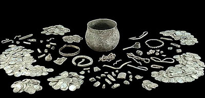 據英國《每日郵報》7月20日報道,這批寶藏包括617枚銀幣、一個實心的黃金臂環、一個鍍銀的罐子,還有許多銀制飾物和沒有打造成形的銀塊。據估計,其總價值至少有75萬英鎊。
