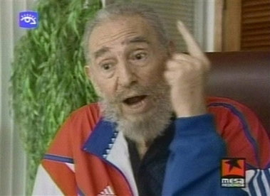 綜合美英媒體報道,卡斯特羅身穿紅、藍、白三色相間的運動服裝,坐在一把椅子上說:“我在這里。” 在一個小時的采訪中,他的語調緩慢,思維敏捷。他警告說,布什政府可能與伊朗開戰,同時還提到伊拉克戰爭的高昂代價。