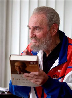 卡斯特羅手拿美聯儲前主席格林斯潘近日發行的新書。[英美媒體圖片]