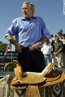 福克斯在書中嘲笑他的這位盟友是“擋風(fēng)玻璃牛仔”——只想坐在車?yán)锒辉蛤T在馬上。福克斯說:“愛馬的人總是能看出別人是否有同樣的感情。”據(jù)說,布什在得克薩斯州的克勞福德私人農(nóng)場的確沒有馬的蹤影,里面只養(yǎng)了5頭牛。