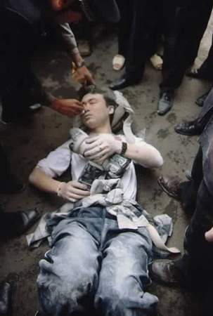 衡陽晚報記者李凌被氣浪沖下樓埋在廢墟中的時候整個人已失去了知覺,但他的雙手依然緊緊抱著相機。他用鮮血換來的珍貴照片昨日展現在廣大讀者面前,這是記者在李凌被搶救出來后拍下的鏡頭。長沙晚報記者攝