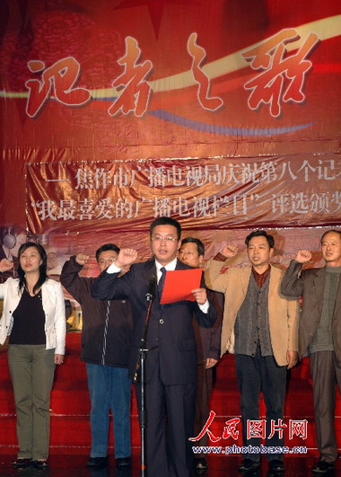 11月6日,河南省焦作市廣播電視記者在進行宣誓,努力做一個合格的新聞工作者。
