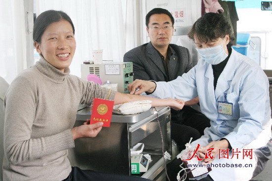 11月7日,贛榆縣新聞中心新聞工作者王桂葉在義務獻血。