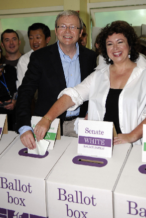 陸克文和妻子一同投票