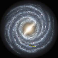 我們所在的銀河系,箭頭所指是太陽系位置。