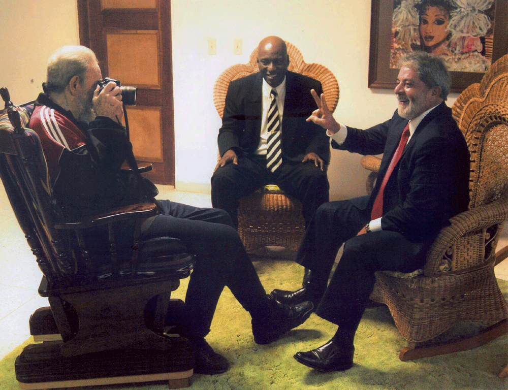 據美國媒體報道,卡斯特羅當天在古巴首都哈瓦那與巴西總統盧拉舉行了兩個半小時的長談。從古巴官方發布的一張照片上看,卡斯特羅身著運動服,腳穿網球鞋,頭發梳得整整齊齊,面露笑容,與盧拉侃侃而談。