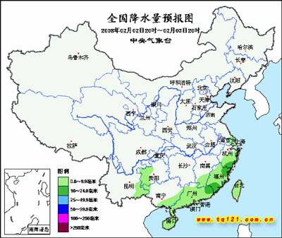 3日20時至4日20時,青藏高原東部、西北地區東南部、川西高原以及云南西北部、湖北西南部及湖南西北部等地的部分地區陰有小雪或雨夾雪;江南中南部、華南大部、西南地區東部以及云南東南部等地陰有小到中雨,其中,貴州西部部分山區有凍雨。內蒙古中部有4~5級偏北風,東海及其以南海區有5~7級偏北風。
