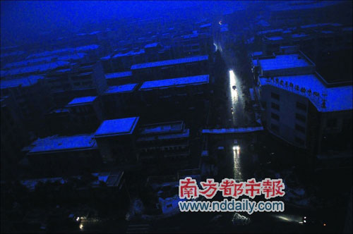入夜以后,湖南郴州市區(qū)一片漆黑。(1月31日?qǐng)D片)記者張志韜攝來源:南方都市報(bào)
