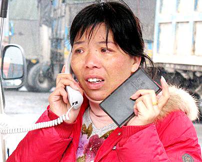 ——1月28日傍晚來自湖北襄樊的龐女士在自己滯留的廣東京珠北韶關境內一邊流淚一邊與家人報平安