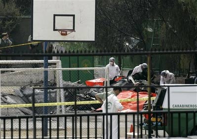智利警方通報(bào)說,失事飛機(jī)為塞斯納210飛機(jī),可搭乘6人,屬于智利軍警航空俱樂部。27日上午9時(shí)45分,飛機(jī)按計(jì)劃從圣地亞哥佩納洛倫區(qū)起飛執(zhí)行訓(xùn)練任務(wù),3分鐘后即與地面失去聯(lián)絡(luò)。10時(shí)左右,飛機(jī)在佩納洛倫區(qū)體育場內(nèi)墜毀并解體,機(jī)上2名警員、4名學(xué)員全部遇難。飛機(jī)墜毀時(shí),體育場內(nèi)有14人正在進(jìn)行體育鍛煉,墜毀的飛機(jī)造成地面4人當(dāng)場死亡,其中包括一名72歲的老人和一名4歲女童,另有一名婦女因燒傷嚴(yán)重,搶救無效在醫(yī)院死亡,目前仍有4人傷勢嚴(yán)重,隨時(shí)有生命危險(xiǎn)。
