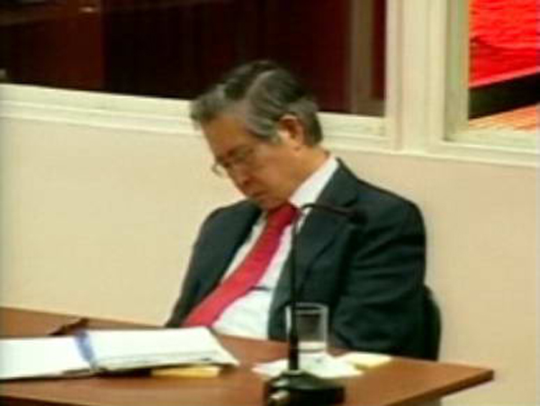 據美國《紐約時報》報道,在當天的庭審中,當一位前軍方官員正在出庭作證時,檢察官突然發現藤森在桌前呼呼大睡,于是向法官示意。主審法官馬丁于是邊搖鈴邊試圖喚醒他:“藤森先生!”但藤森沒有反應,法官觀察了一陣后說:“他還在睡!”于是,法官不得不再次搖鈴叫醒他。終于藤森醒了,他迷迷登登地抬起頭,看到所有人都在盯著他看,于是帶著驚訝的表情對法官笑笑。
