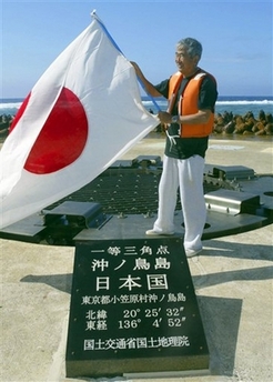 日本近年來堅稱沖之鳥礁是“島嶼”,這樣其周邊200海里一帶豐富的天然資源就歸日本所有。日本東京都知事石原慎太郎曾于2005年5月20日抵達沖之鳥礁進行“視察”,并聲稱該礁石是“島嶼”。隨后,日本國土交通省于同年6月宣布在沖之鳥礁安裝地址標牌,上寫“東京都小笠原村沖之鳥島一番地”、“日本國最南端的島”、“沖之鳥島由國土交通省管理”等字樣。關于安裝地址標牌理由,日本國土交通省說,由于受到國際社會的關注,所以有必要標明由誰負責管理。