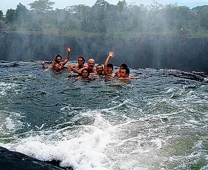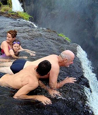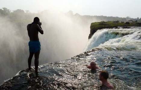 導游們從津巴布韋將那些膽量十足的游客護送上這個游泳池,一般每個人收取5美元的小費,而游客們一旦到達了這個“極限運動者天堂”,無一不被眼前的壯觀景象所折服。