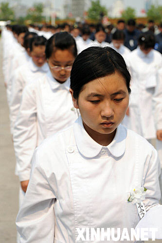 5月19日,天津1600名各族各界代表隆重集會,默哀3分鐘,哀悼汶川大地震死難者