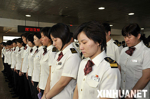 5月19日14時28分起,工作人員在濟南火車站候車室向汶川大地震遇難者默哀