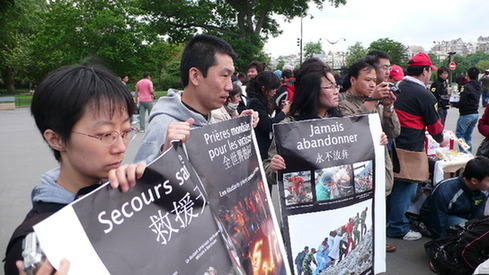 這場祈福會是由在法華人華僑和留學生自發組織的,并經過警察局批準在埃菲爾鐵塔下舉行。在法華人、華僑和留學生獲悉四川大地震發生后,已經舉行了多次募捐活動。巴黎的籌款活動正在進一步開展中。