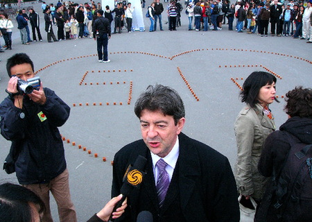 中國日報網環球在線消息:巴黎當地時間5月18號晚上,近千名在法華人、華僑、留學生和法國友人聚集在埃菲爾鐵塔下,為"5-12"四川大地震遇難者舉行燭光祈福會,以表達對地震災區逝者的哀思和對生者的祝福。法國前總統希拉克的養女英瑤?特拉塞爾(Mme. Anh Dao Traxel)女士作為本次活動的主辦支持人,與丈夫一起出席。法國社會黨籍前部長、現任參議員讓?呂克?梅朗雄也出席了本次活動。