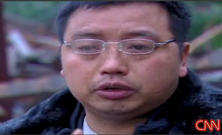 在他介紹鎮上的受災情況時,我問他共有多少人喪生。眼淚從他臉上滑落,他也不去擦拭。他說,有500人死亡,其中包括他的父母、妻子和兩個孩子。