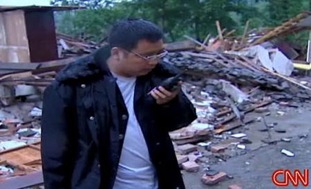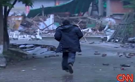 我和制片人范文春(音)盡我們所能穿過被泥石流和大塊的碎石阻隔的道路,一路上,我們親眼目睹了地震后的情形。