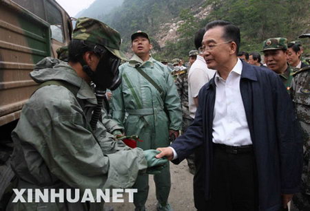 5月12日四川汶川大地震發(fā)生后,溫家寶當天即前往災區(qū)指揮抗震救災工作。5月16日,從四川地震災區(qū)返回北京后,溫家寶在京連續(xù)召開多次總指揮部會議,就抗震救災工作進一步做出部署。