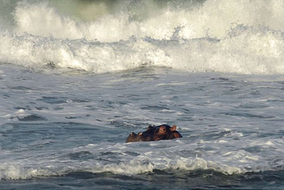 一只河馬悠然自得地在南非海岸沿線沖浪