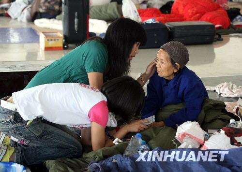5月22日,兩位綿陽的志愿者在悉心照顧來自北川災(zāi)區(qū)的蔣桂芳老人。志愿者們?yōu)槔先讼茨槨⒉潦?、掏耳朵、剪指甲,無微不至,親同祖孫。四川汶川大地震發(fā)生后,在綿陽市九洲體育館設(shè)立的受災(zāi)群眾接待安置中心,許多來自全國各地,不同職業(yè)、不同年齡的志愿者用細(xì)致周到的服務(wù)為受災(zāi)群眾排憂解難,并以自己的愛心和關(guān)懷撫慰受災(zāi)群眾,幫助他們渡過難關(guān),重建家園。新華社記者王建民攝