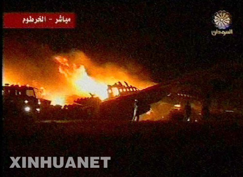 2008年6月11日 一架蘇丹客機在喀土穆失事據蘇丹電視臺10日報道,至少有100多人在當天晚間在蘇丹喀土穆國際機場發生的一架蘇丹客機爆炸起火事故中死亡。 新華社/路透