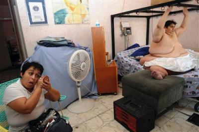 據美國有線電視新聞網11日報道,烏里韋居住在墨西哥北部城市蒙特雷,曾以560多公斤的體重創下吉尼斯紀錄。他說,1988年他前往美國后陷入垃圾食品當中不能自拔,體重劇增,一發不可收拾。一次失敗的吸脂手術又損壞了他的淋巴結,導致他雙腿各長出一個巨瘤,總重100公斤,這也是他不能行走的主要原因。已經有6年不能下床的他說:“這都怪垃圾食品。”