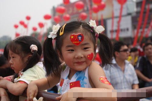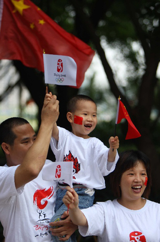 中外小朋友開心迎接奧運火炬