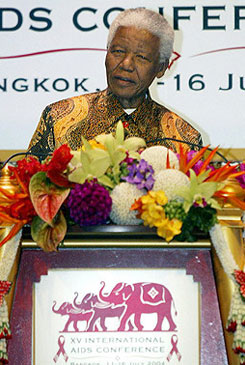 2004年7月16日,曼德拉在15屆國(guó)際艾滋病大會(huì)閉幕式上講話(法國(guó)媒體圖片)