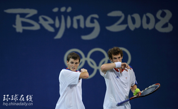 英國網(wǎng)球選手穆雷兄弟在男雙第一輪比賽中