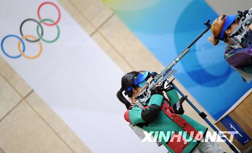 8月14日,中國選手杜麗在決賽前的試射階段。當日,北京奧運會射擊女子50米步槍三種姿勢決賽在北京射擊館決賽館舉行,杜麗獲得金牌。新華社記者李尕 攝
