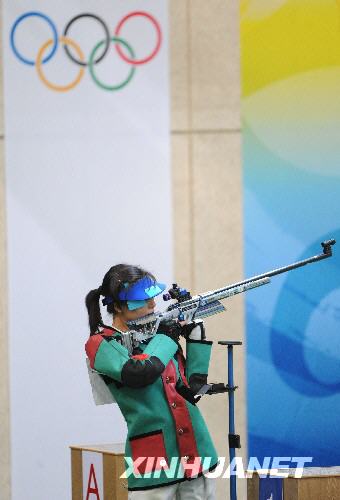 8月14日,中國選手杜麗在比賽中。當日,在北京奧運會射擊女子50米步槍三種姿勢決賽中,中國選手杜麗獲得冠軍。 新華社記者李尕 攝