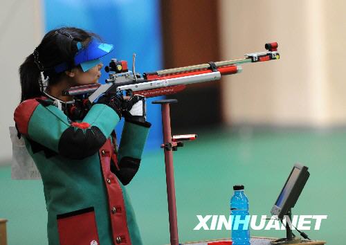 當(dāng)日,在北京奧運(yùn)會(huì)射擊女子10米氣步槍決賽中,雅典奧運(yùn)會(huì)該項(xiàng)目冠軍杜麗以499.6環(huán)的總成績(jī)獲得第五名。新華社記者 鮑菲菲攝