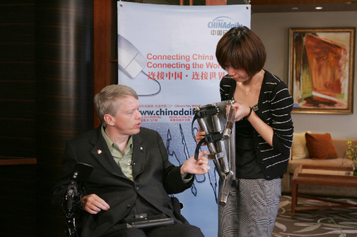 沙利文是北京殘奧會(huì)為數(shù)不多的外籍火炬手之一。由于身體不便他要求工程師為傳遞火炬特別設(shè)計(jì)了一個(gè)裝置,以保證火炬?zhèn)鬟f的順利進(jìn)行。