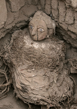 其中一具女性木乃伊令人印象最為深刻。由于她頭戴的木制面具色彩華麗、精雕細刻,考古學家因此推斷她應該屬于當時的貴族階層,并叫她“面具女士”。考古學家發現她時,其呈蹲坐姿勢,周圍擺放著陶器和紡織品。考古隊隊長伊莎貝爾·弗洛雷斯說:“面具上的眼神堅毅、目光如炬,令工作人員和考古學家感到震驚。”除了這三具木乃伊,現場同時出土的還有一具陪葬兒童的遺骸,兩個保存完好的面罩和多種織物。