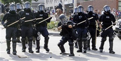 這些反戰(zhàn)人士首先在圣保羅州議會大廈門前集合,然后舉著反戰(zhàn)標語,高呼反戰(zhàn)口號,穿過鬧市區(qū)前往共和黨全國代表大會所在地“卓越能源中心”。在會場門前,示威者遭到大批防暴警察的阻擋,雙方發(fā)生肢體沖突,有示威者襲擊警車,還有的向商店扔磚頭。有數(shù)人被警察逮捕。