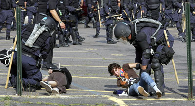 | 警察向示威者發(fā)射橡皮子彈。 |