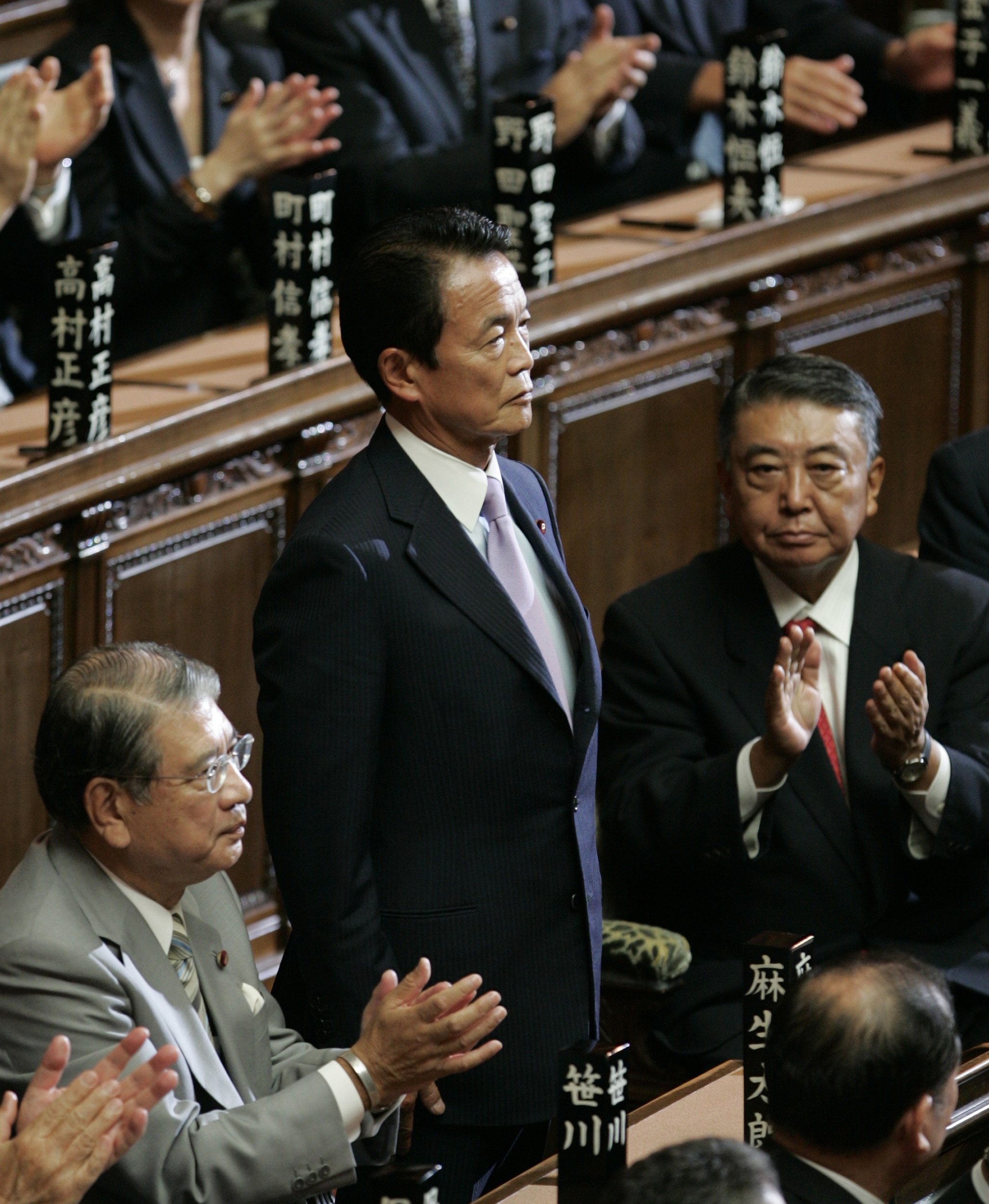 麻生太郎當選新一任日本首相,自民黨議員鼓掌祝賀
