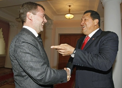 26日,梅德韋杰夫在奧倫堡會(huì)見(jiàn)委內(nèi)瑞拉總統(tǒng)查韋斯