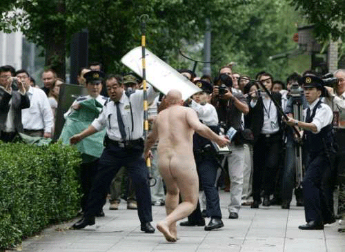 英國《每日電訊報(bào)》援引當(dāng)?shù)孛襟w報(bào)道說,這名男子一絲不掛跳入日本明仁天皇宮邸前的護(hù)城河,然后上岸向警方投擲石塊并擊中兩名警察。