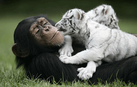 中國(guó)日?qǐng)?bào)網(wǎng)環(huán)球在線消息:人們經(jīng)常聽(tīng)說(shuō)“動(dòng)物奶媽”的事,即某個(gè)動(dòng)物媽媽“大愛(ài)無(wú)私”為其它種類(lèi)動(dòng)物被棄幼仔哺乳,但“動(dòng)物保姆”卻比較少見(jiàn)。而在美國(guó)南卡羅來(lái)納州,一只兩歲大的小黑猩猩竟然為兩只白虎幼仔當(dāng)起了保育員,不辭辛苦地幫助飼養(yǎng)員照料這兩個(gè)小家伙。