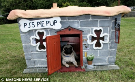 這個精美的微型酒吧是小狗的主人邁克和海倫專門請人為它量身定做的。現年60歲的邁克和54歲的海倫經營著一家酒吧,他們的招牌菜就是餡餅,因此他們想為愛犬打造一個和他們的酒吧相配的、以餡餅為主題的酒吧。