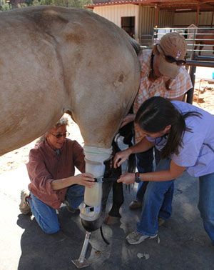 就在他們為賴利將來的命運深感擔憂時,收容所新來的一位志愿者告訴他們在猶他州有一位叫特德·弗洛霍斯的獸醫曾經成功地為馬匹安裝過假肢。抱著試一試的心態,收容所聯系了弗洛霍斯醫生,看他能否為賴利安裝假肢。弗洛霍斯醫生告訴收容所的人,能夠安裝假肢的馬需要符合一些條件:馬的脾氣不能過于暴躁焦慮,因為跟人一樣,馬安裝了假肢的腿要在吊環上吊一段時間,如果這匹馬脾氣不好的話就很容易得疝氣;此外,馬匹未受傷的那幾條腿也要格外強健,因為在恢復期內這幾條好腿需要承受很大的重量。