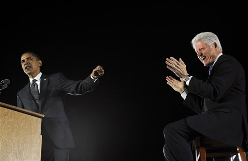 中國日報網環球在線消息:綜合報道,美國前總統克林頓29日首次亮相奧巴馬的拉票集會。民主黨新舊兩位重頭人物握手言歡,共同呼吁變革。