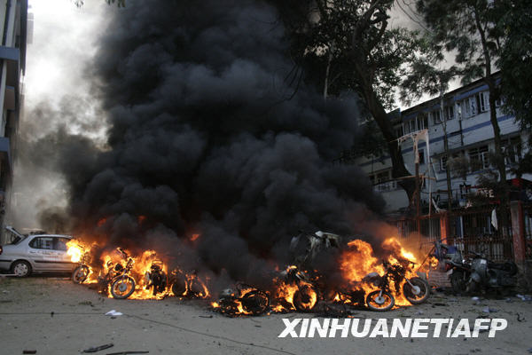 10月30日,在印度東北部阿薩姆邦的高哈蒂,一些車輛在爆炸中被毀。新華社/法新