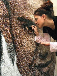 這幅巨作的尺寸為8英尺(約2.4米)×5英尺(1.5米),一共由25萬張小紙片粘合而成。它的作者、現年34歲的杜斯韋特女士整整花了12周的時間才將每一張紙片粘到了巨大的肖像上面,并恰好在漢密爾頓奪得巴西國際汽車大獎賽冠軍的前幾天大功告成。從一定的距離以外看,這幅作品似乎與傳統油畫沒什么兩樣,只有當你走近時,才會發現它是由打孔機出來的圓紙片做成的。