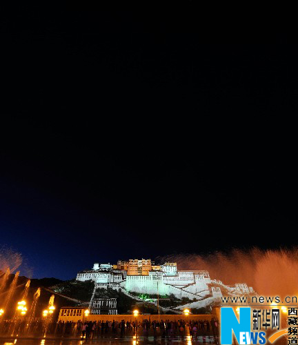 雪頓節期間,夜晚的布達拉宮在景觀燈的裝點下更顯壯美和神奇。布達拉宮廣場上,樂聲陣陣,噴泉迭起,讓游客和市民們游樂其中,流連忘返。新華社記者 普布扎西攝