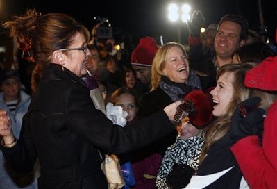 中國日報網(wǎng)環(huán)球在線消息:美國媒體11月6日報道,在大選中落敗的共和黨副總統(tǒng)候選人佩林當天回到自己管理的阿拉斯加州,在那里受到了家鄉(xiāng)父老的歡迎。她的支持者們在接機時鼓勵這位年僅44歲的美女州長參加四年后的美國大選。