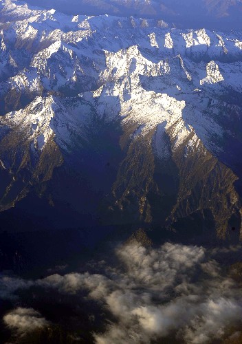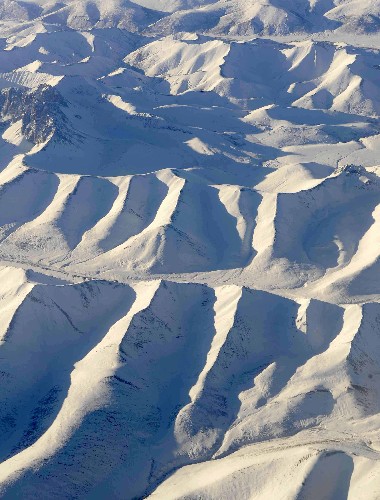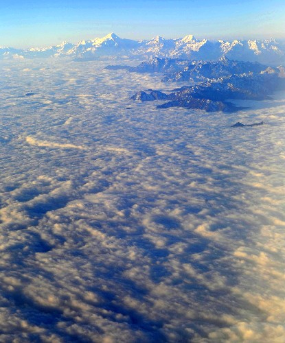 近日,青藏高原迎來降雪天氣,游客們在飛機上可以欣賞到高原雪景。 新華社記者 普布扎西 攝